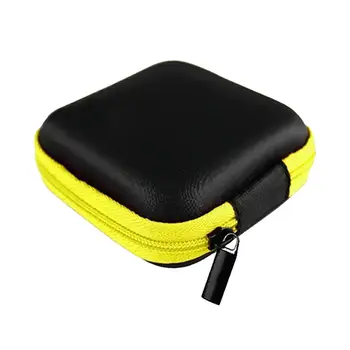 Portable PU Zippered Pouch Square Shape Earphone Case Mobile Phone Data USB Cable Charger Organizer Storage Box