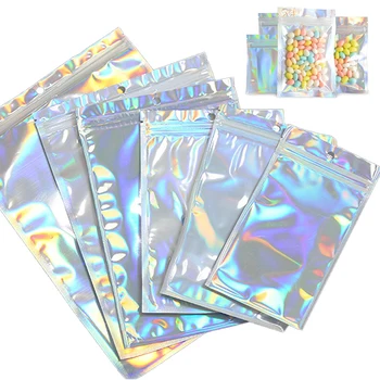 Best 20Pcs PET Flat Zip Lock Bags Pouches Cosmetic Plastic Laser Iridescent Bags Holographic Makeup Bags Hologram Zipper Bags^1